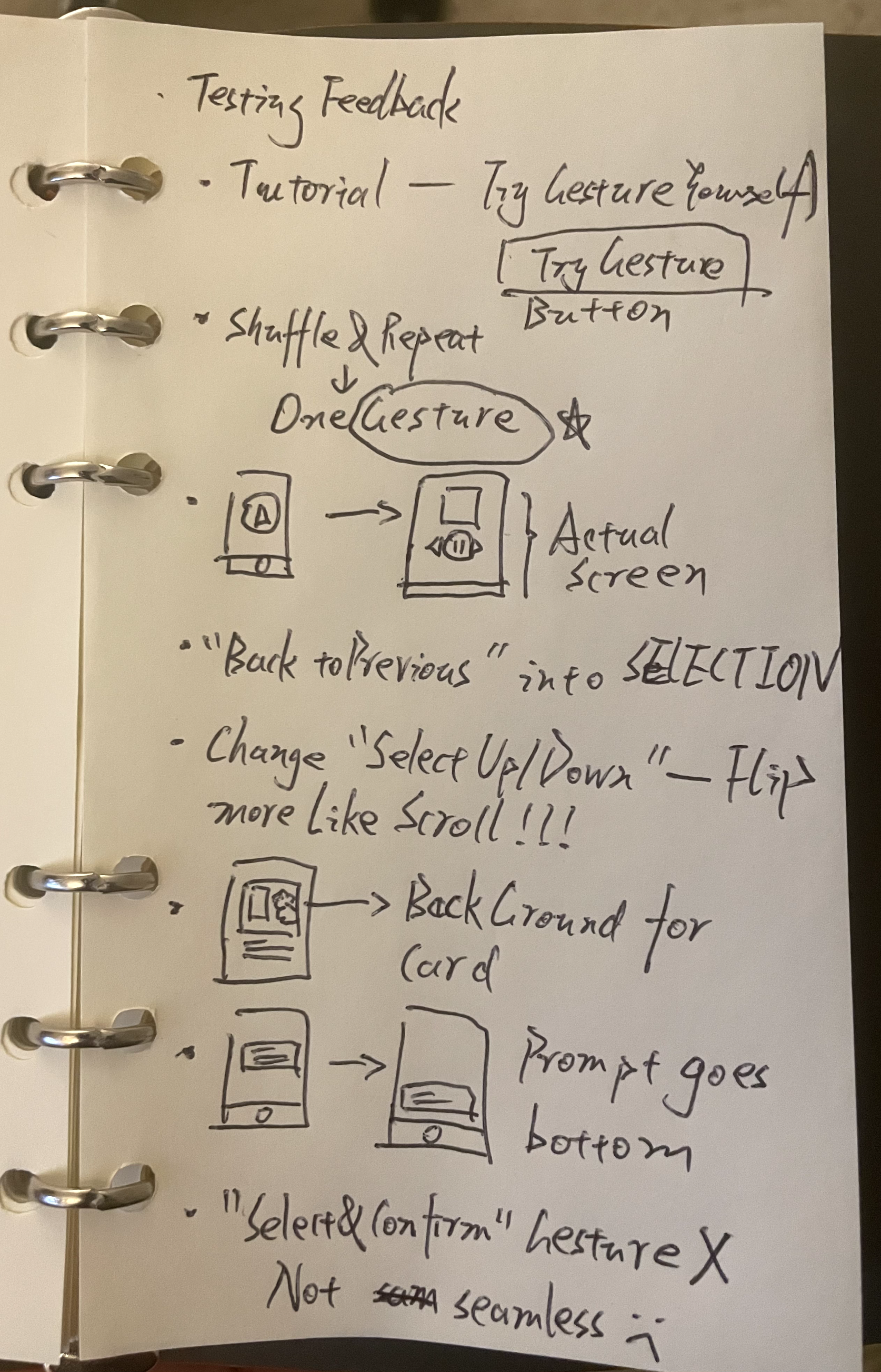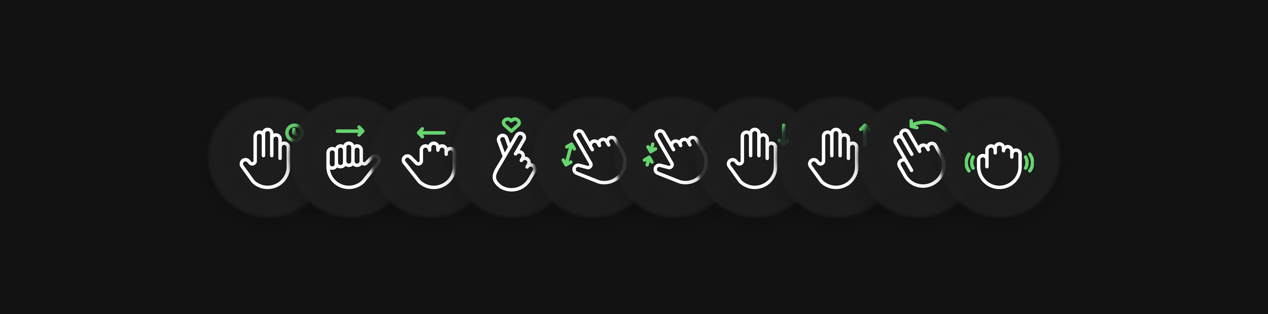 Informed by user testing feedback, I refined the design to address earlier shortcomings. To validate the effectiveness of the gesture icons, I demonstrated all icons to users and asked for their interpretations of each gesture's function. This approach confirmed a viable gesture icon solution suitable for a broad audience.