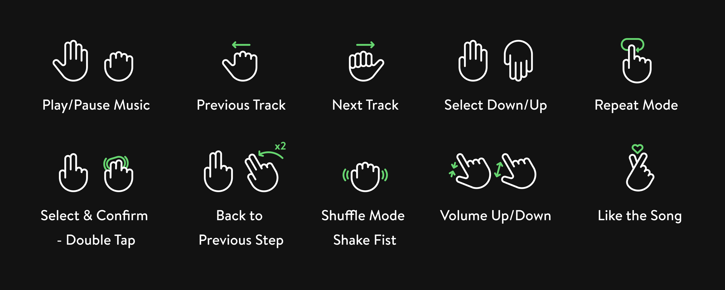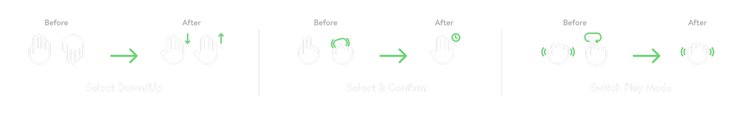 Gestures: Previous Track, Next Track, and Switch Play Modes.